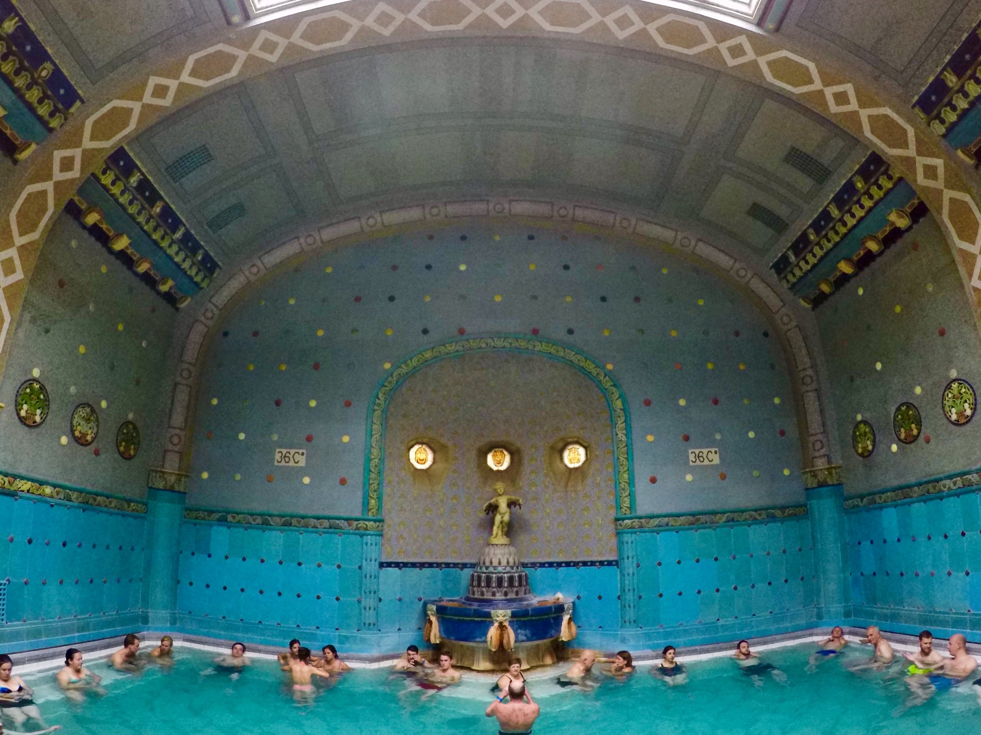 - Go to a Thermal Bathhouse – Budapest has 15 bathhouses but the top three are Gellert Spa, Szechenyi Spa and Rudas Spa. What makes these bathhouses so special is that they are naturally heated. Szechenyi Spa is the largest bathhouse and there you can play chess in the baths but I recommend going to Gellert Spa. It is a bit more expensive but it is nice having less people. It costs 5300Ft/5500Ft if you visit on a weekday/weekend and it is open from 6am to 8pm. There are 9 pools, two outdoor, two swimming pools, two cold pools and five thermal pools. It is best to go early or late at night to avoid crowds. You will only need about 1½ to 2 hours here (longer if getting treatments). You can rent bathing suits, towels and shower caps (you need a shower cap to go in the indoor swimming pool) but it is best to just bring your own. The change rooms aren’t very but you can rent your own private change room if you want for a bit more. Spa treatments start at 4500Ft for a 20 minute head or foot massage.